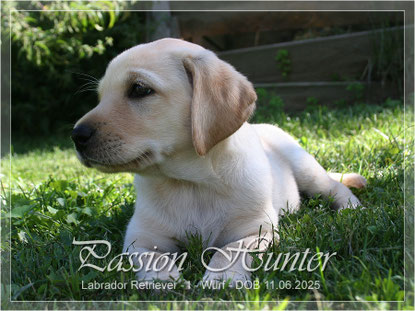 Es ist ein rein gelber Wurf. Fergie stammt aus der Arbeitslinie und Nacho ist ein dunkelgelber (foxred) Showrüde. Diese Verpaarung nennt man Dual Purpose.