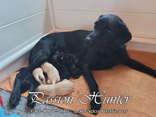 | 1 Rüde schwarz / 3 Hündinnen gelb 2 schwarz | ||||